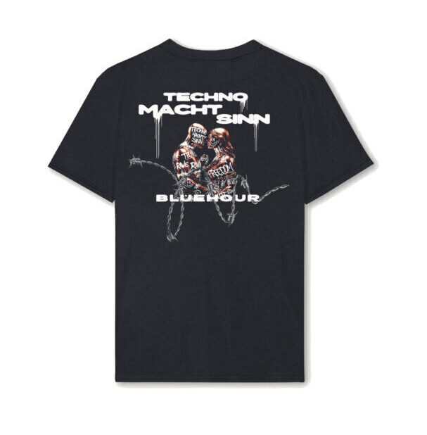 Unser schwarzes Shirt mit einer spektakulären Backprint-Grafik bringt das Vibrieren des Basses und die Gemeinschaft der Tanzfläche direkt auf den Stoff. Ein Must-Have Merch-Artikel für alle Fans unseres Techno-Events.